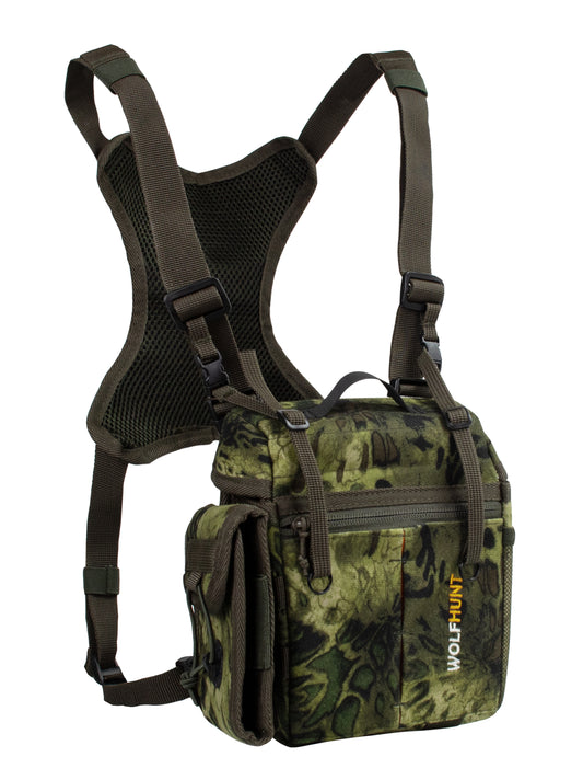 WOLFHUNT Binocular Harness Chest Pack Magnetic Closure, Bino Case with Detachable Rangefinder Pouch, Camouflage Bino Bag with Adjustable Strap for Hunting, Prym 1 MP