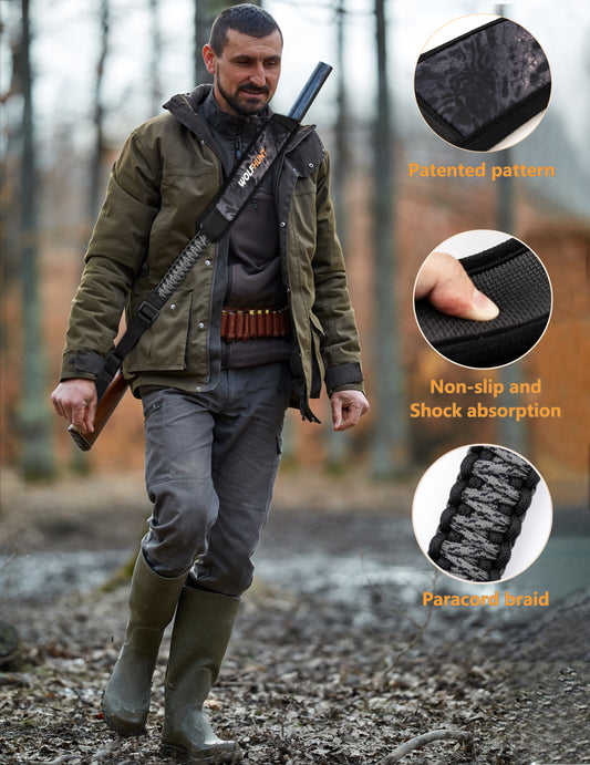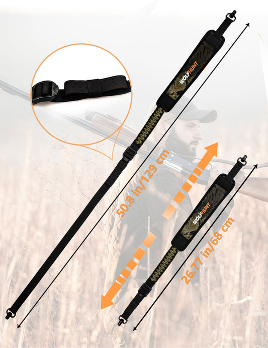 WOLFHUNT 2 Point Gun Sling with QD Swivels Semi-Paracord Hunting Rifle Sling QD Mount Comfortable Neoprene Padded Length Adjustable, Prym1 Woodlands