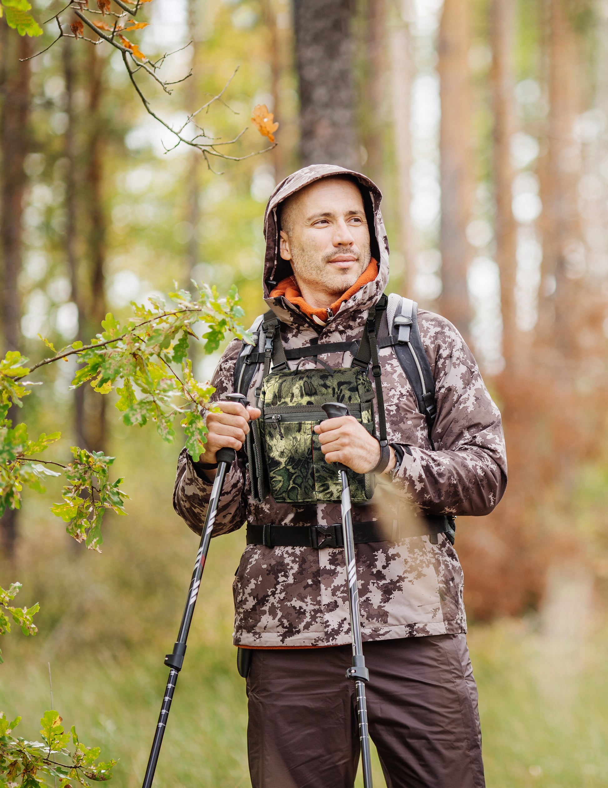 | ●Extra Detachable Rangefinder Pouch● Enjoy added convenience with an extra detachable rangefinder pouch, ensuring your essential gear is within reach, besides, this pouch can remove. Bino chest pack inner size: 7.9*6.1*2.8 in, pouch dimension:5.9*3.5 in. |