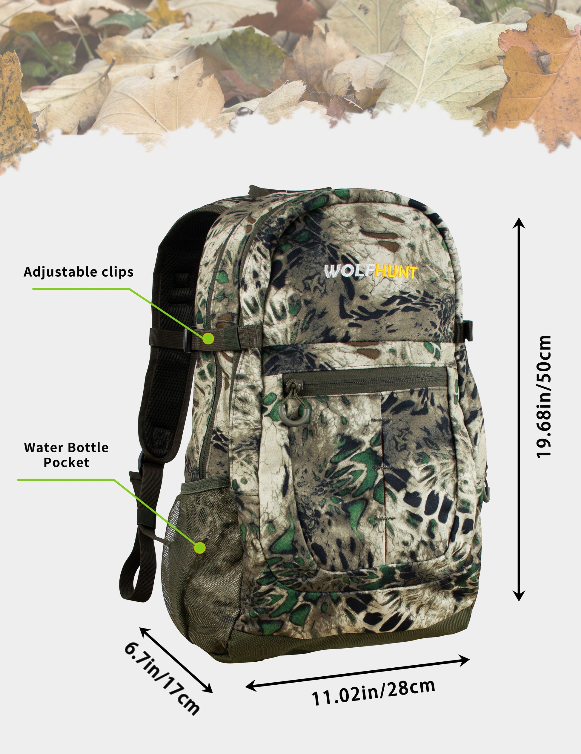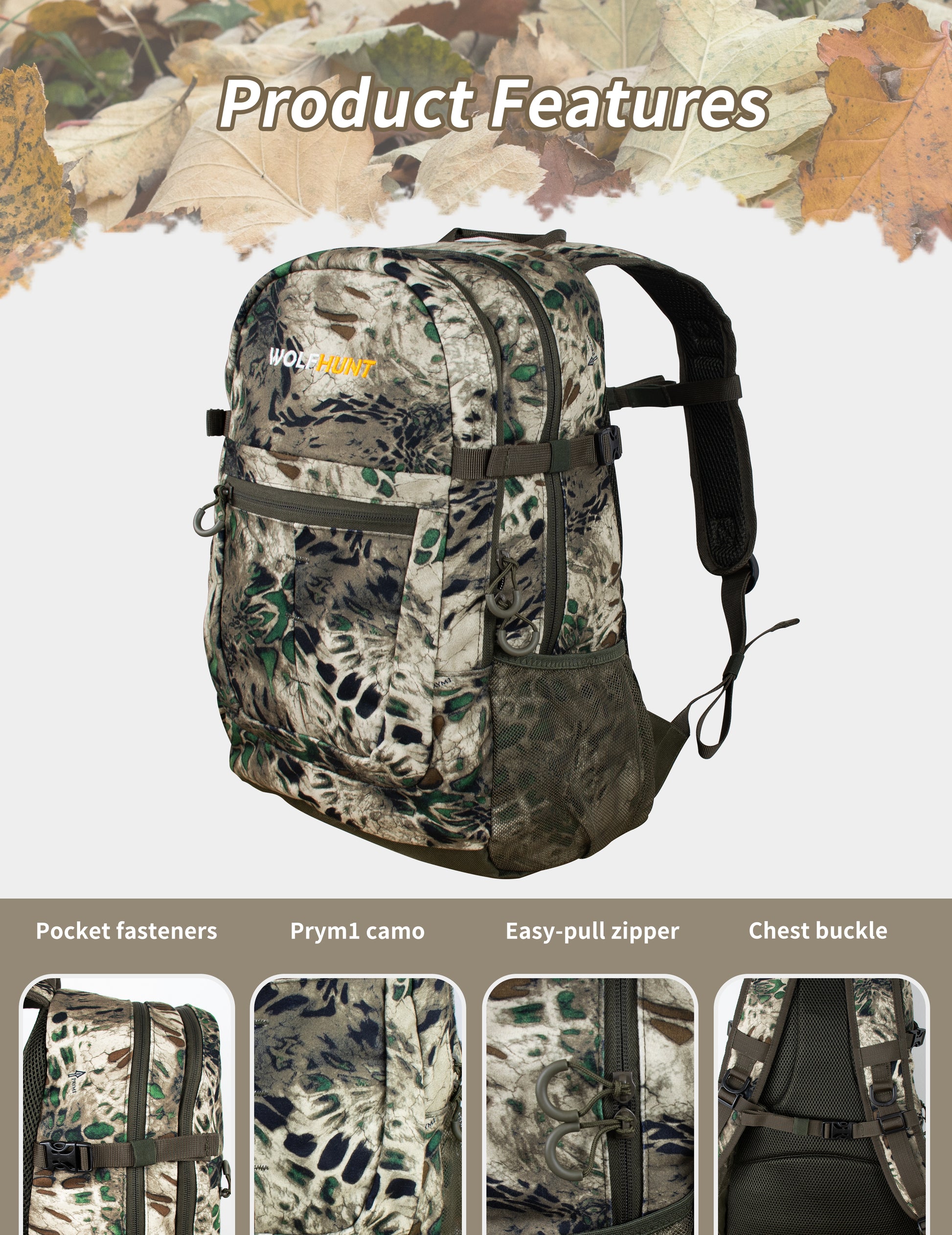 WOLFHUNT Camouflage Backpack for Men, Hunting Camo Pack Hiking Backpack Day Pack Multifunctional Outdoor Gear for Hiking, Fishing, Shooting, Prym1 MP