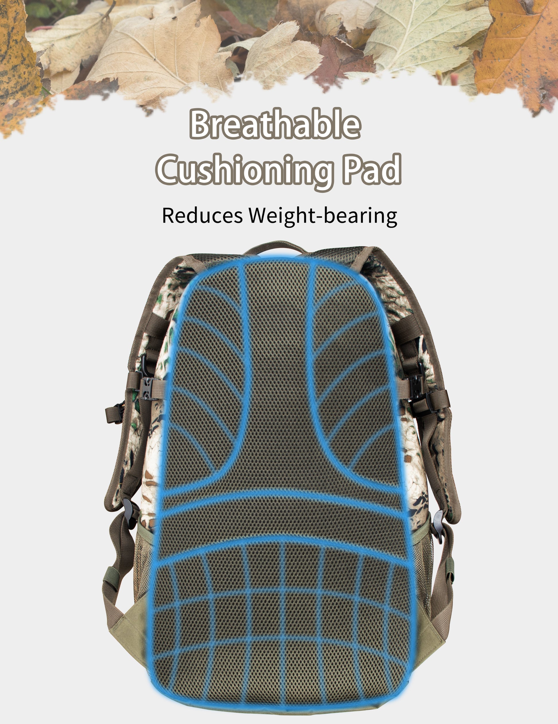 | 【Comfortable & Durable Design】 Experience comfort and durability in one with our hunting backpack. The thickened back padding design guarantees a comfortable fit during long treks, while the robust construction ensures the backpack can endure the toughest conditions. |